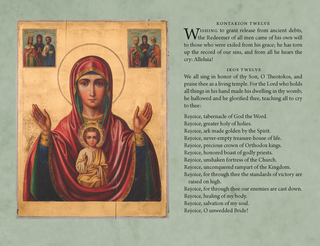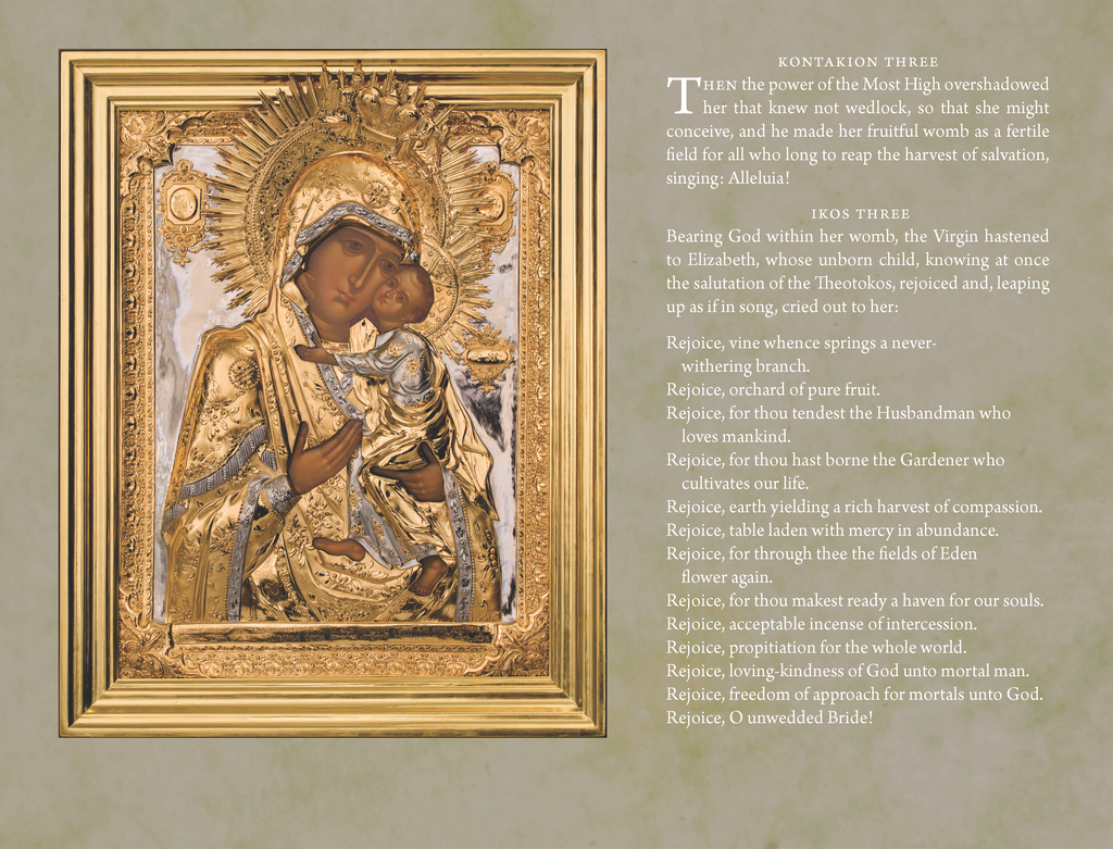Features icons of the Theotokos from Saint Tikhon's Monastery (and friends) paired with excerpts from The Akathist to the Theotokos.