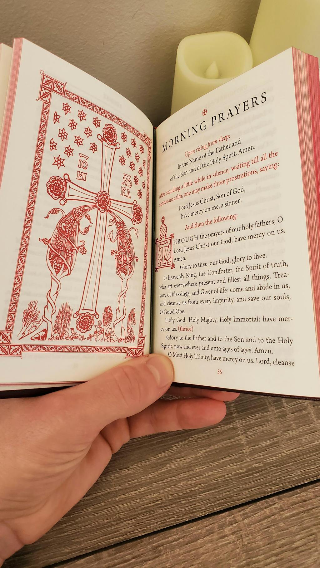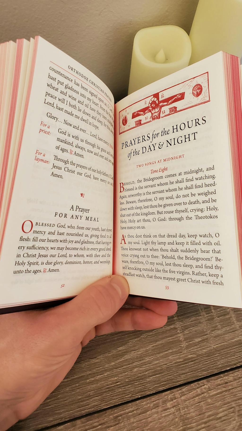This is my fourth prayer book, and each one has pros and cons, but this prayer book is a wonderful addition.I recommend it for two reasons: (1) it include several long-form prayers for when you want to expand on your prayer rule, and (2) it includes tons of the Troparia and Kontakia for the feasts of the Church. I honestly go back and forth between whether I prefer modern or traditional English, but this prayer book’s traditional English is fantastic in that it’s very smooth, poetic, and easy to understand for someone who isn’t well-versed in such. I also love how this book always references the Saint who wrote the prayer or other source, if known.